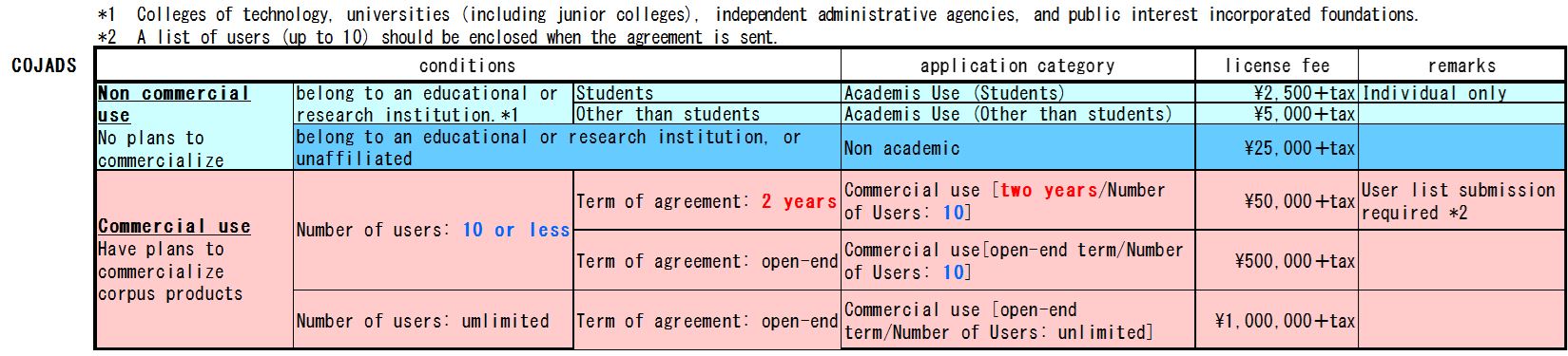 Formats of "Corpus of Japanese Dialects" License Agreement: